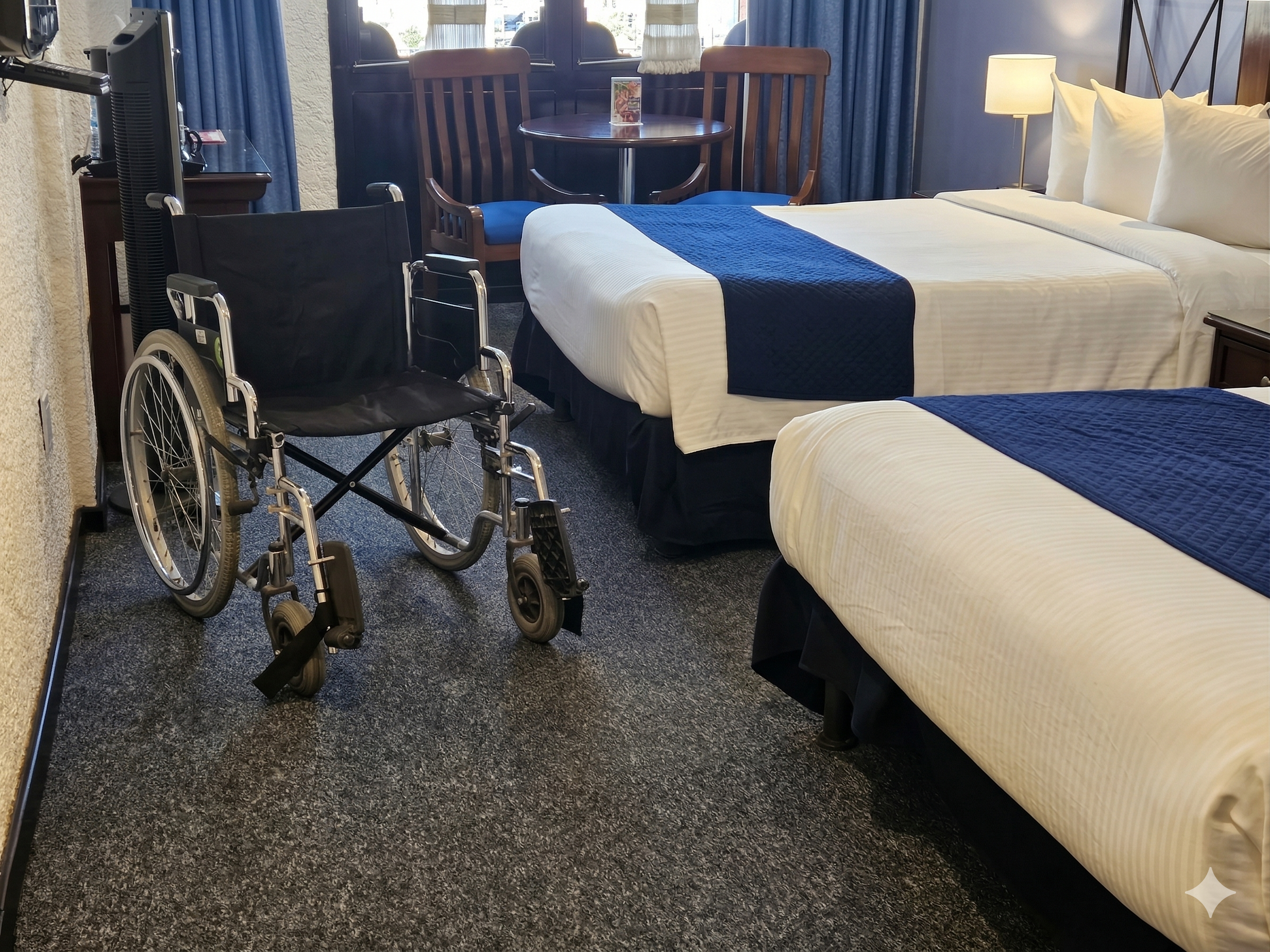 -no thresholds at the entrance, in the bathroom, or in the shower